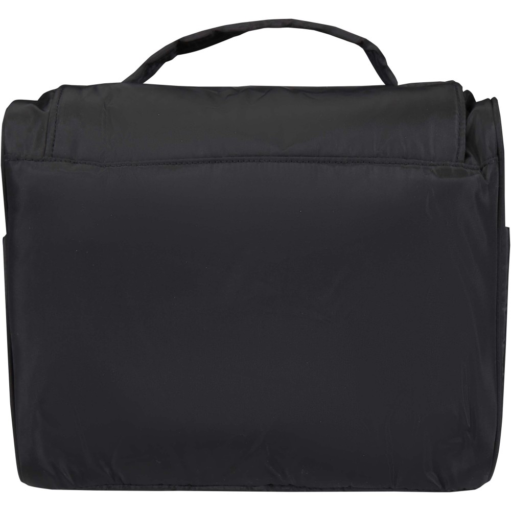 A Puffer felakasztható piperetáska GRS tanúsítvánnyal rendelkező újrahasznosított alapanyagokból készül, egyedi kialakítással a mindennapi kényelem érdekében. A 8 literes neszesszer tágas fő rekesszel rendelkezik, hat belső zsebbel, két külső oldalzsebbel, valamint egy praktikus akasztóval, amely ajtóra vagy törölközőtartóra rögzíthető. A párnázott fogantyú megkönnyíti a hordozást, míg a jellegzetes puffer stílusú párnázás egyszerre biztosít védelmet és esztétikus megjelenést. Könnyű és vízlepergető kialakításának köszönhetően utazás közben is rendezetten és biztonságosan tartja a legfontosabb tisztálkodási kellékeket.